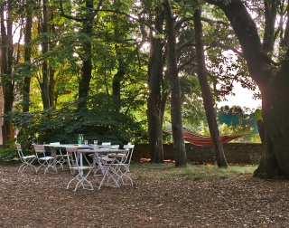 Die ehemalige gräfliche Sommerfrische bietet mit neun Zimmern, einer großen Küche mit offenem Kamin, Eingangshalle, Salon, Kaminzimmer und Atelier viel Platz für Individualisten. Die original erhaltenen Räume sind zum Teil freskengeschmückt, liebevoll restauriert und individuell möbliert. Umgeben von alten Steineichen und Zypressen kann man im Haus und weitläufigen Garten die Ruhe genießen oder malen, entspannen, musizieren – je nach Lust und Laune.